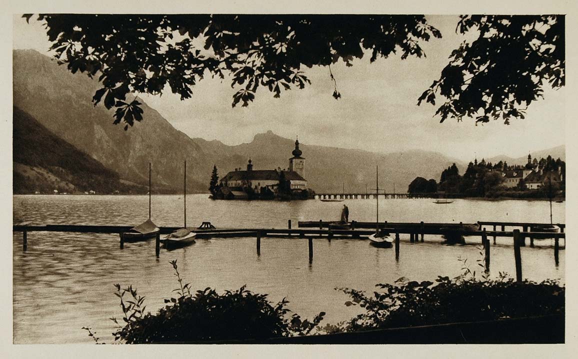 1928 Schloss Ort Castle Traunsee Lake Upper Austria - ORIGINAL PHOTOGRAVURE AUS2