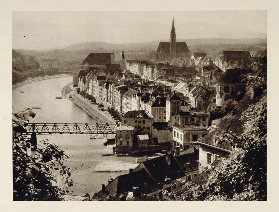 1928 Steyr Austria Enns River Town Photogravure NICE - ORIGINAL GER1