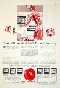 This is an original 1929 two-color print ad for the American Stove Company with red wheel dials.