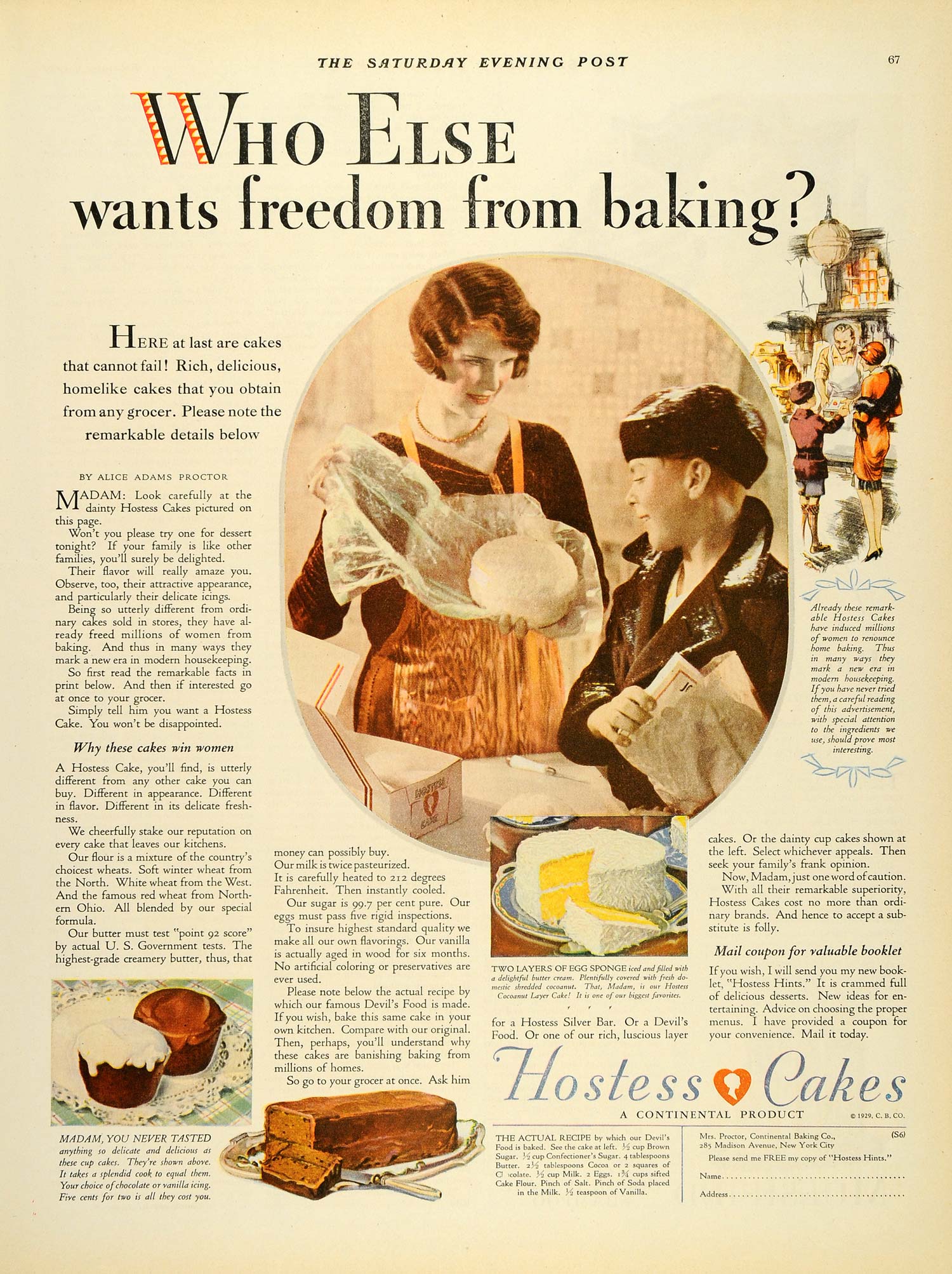 This is an original 1929 color print ad for Hostess Cakes.