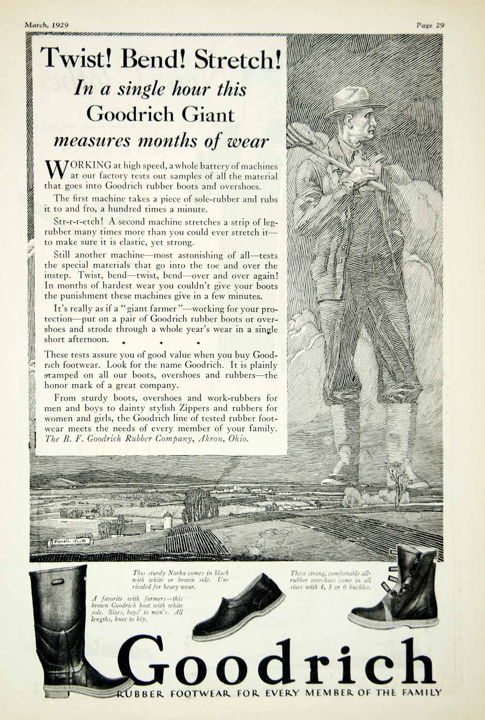Keywords specific to this image: Vintage Advertising, Clothing, Agriculture, Labor, Overshoes, High Top, Tool, Field, Rake, Rural, Countryside, Twist, Bend, Stretch, Wear, Style, Fashion, Vista, Landscape, Silo, Horizon