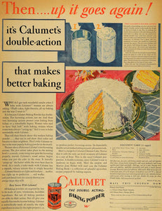 This is an original 1929 color print ad for Calumet Double Acting Baking Powder, featuring a recipe for coconut cake.