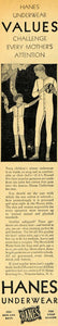 This is a small original 1929 black and white print ad for Hanes Underwear, a product by P. H. Hanes Knitting Company in Winston-Salem, North Carolina.