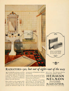 This is an original 1929 color print ad for the Herman Nelson Invisible Radiator by The Herman Nelson Corporation located in Moline, Illinois.