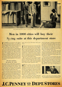 This is an original 1929 black and white print ad for J. C. Penny Company, with its main offices and warehouse located at 330 W. 34th Street in New York City. This particular store was founded by James Cash Penny during the early 1900s.