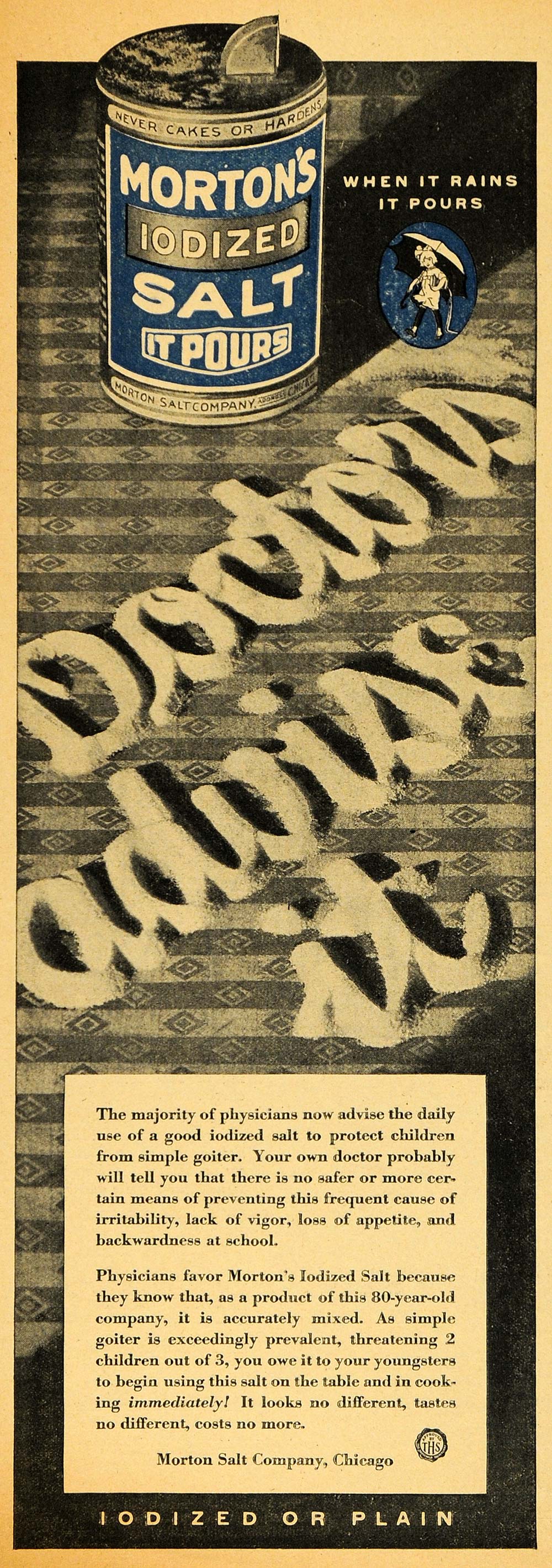 This is an original 1929 color print ad for Morton's Iodized Salt.