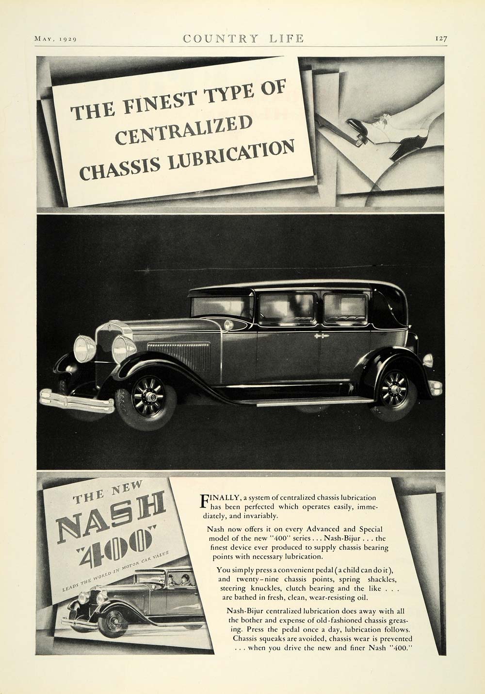 This is an original 1929 black and white print ad for the Nash "400" automobile from Nash-Kelvinator Corporation.