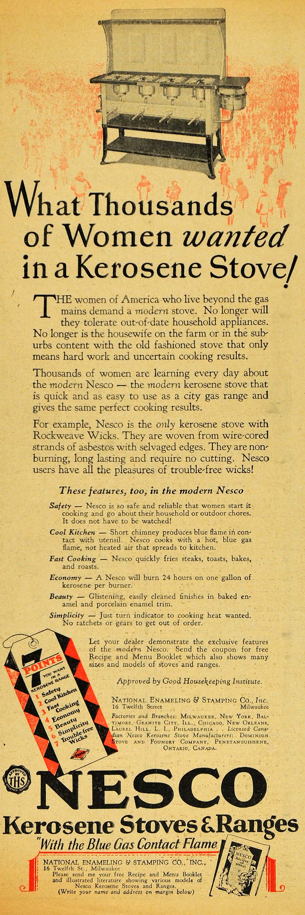 Keywords specific to this image: Vintage Advertising, Cooking, Antique, Baking, Household Appliances, Kitchen Appliances, National Enameling and Stamping Company, 16 Twelfth Street Milwaukee Wisconsin, With the Blue Gas Contact Flame