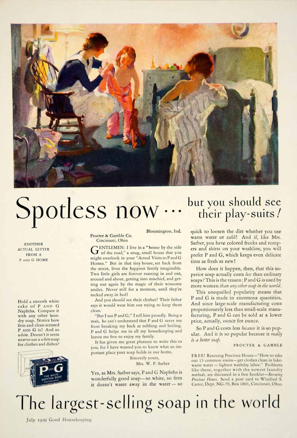 This is an original 1929 color print ad for P & G White Naphtha Soap.