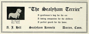 This is a small original 1929 black and white print ad for Sealyham Terriers for sale by Sealyham Kennels in Darien, Connecticut.