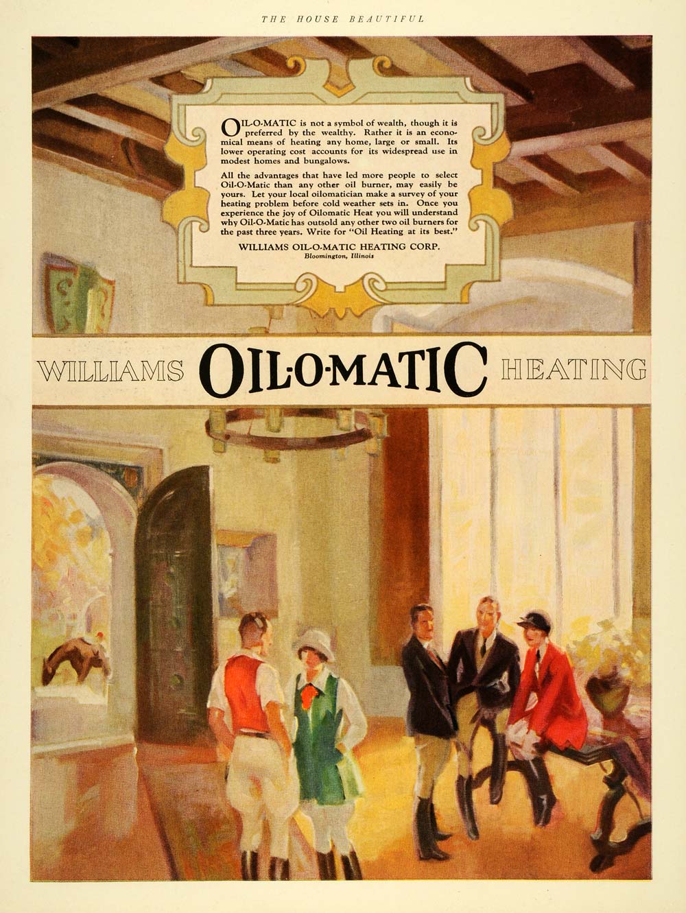 This is an original 1929 color print ad for Williams Oil-O-Matic Heating.