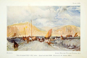 1929 Color Print Waves Cityscape Hastings England Mountain Sailboat Coast XADA5