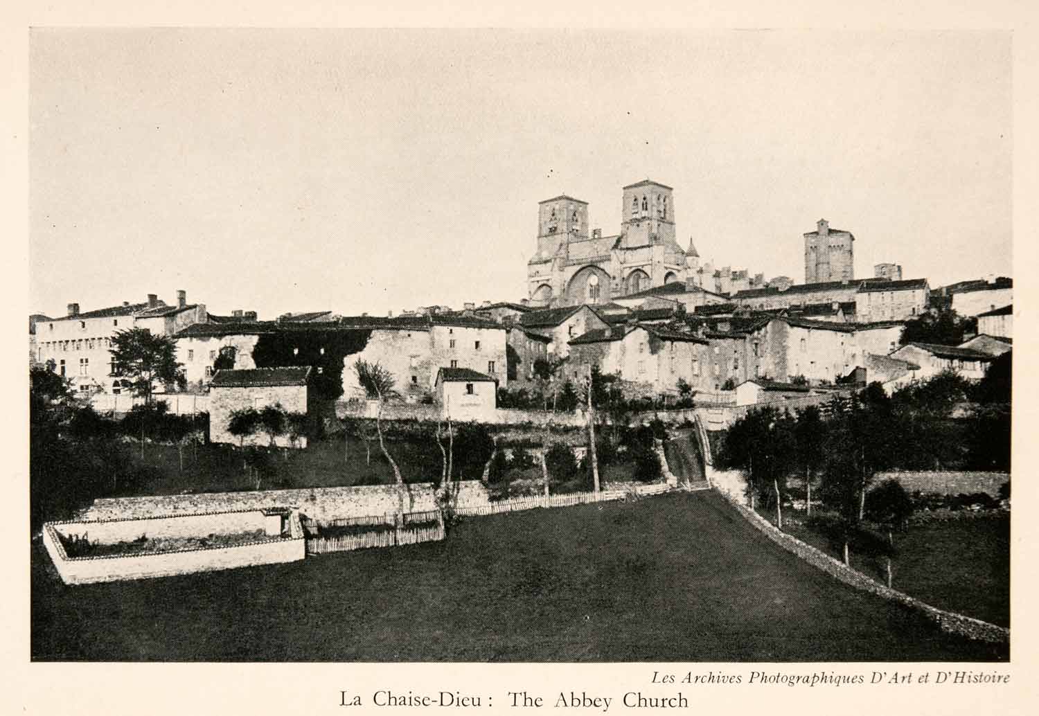 This is an original 1929 black and white halftone print of La Chaise-Dieu: the Abbey Church in France. This Benedictine abbey was founded in 1043 and continued to grow until the monks were driven out during the French Revolution. In 1727 Bishop Jean Soanen was exiled to the Abbey and since 1966 an annual festival of classical music takes place every year.