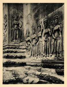 1929 Photogravure Angkor Wat Cambodia Devatas Hindu Deities Temple Sculpture