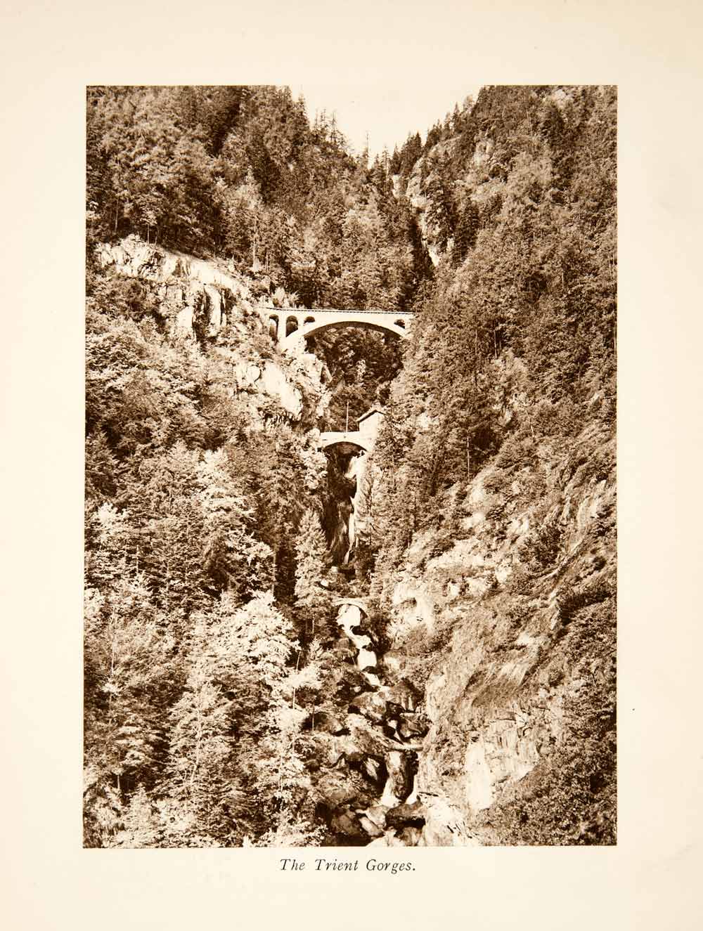 This is an original 1929 black and white photogravure of the Trient Gorge or Ravine which was carved into Mont Blanc by the Trient River. This ravine is located in the Alps in the canton of Valais, Switzerland.
