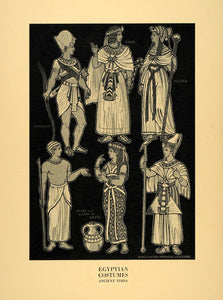 This is an original 1929 halftone print of ancient Egyptian costumes including that of a warrior, King and Queen, and a man and a lady of rank.