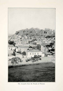 This is an original 1929 black and white halftone print of the Acropolis of Athens in the background, with the city of Athens in the foreground. The picture was taken from the Temple of Theseus, which is considered to be the best-preserved ancient Greek temple. The temple sits on the north-west side of the Agora in Athens.