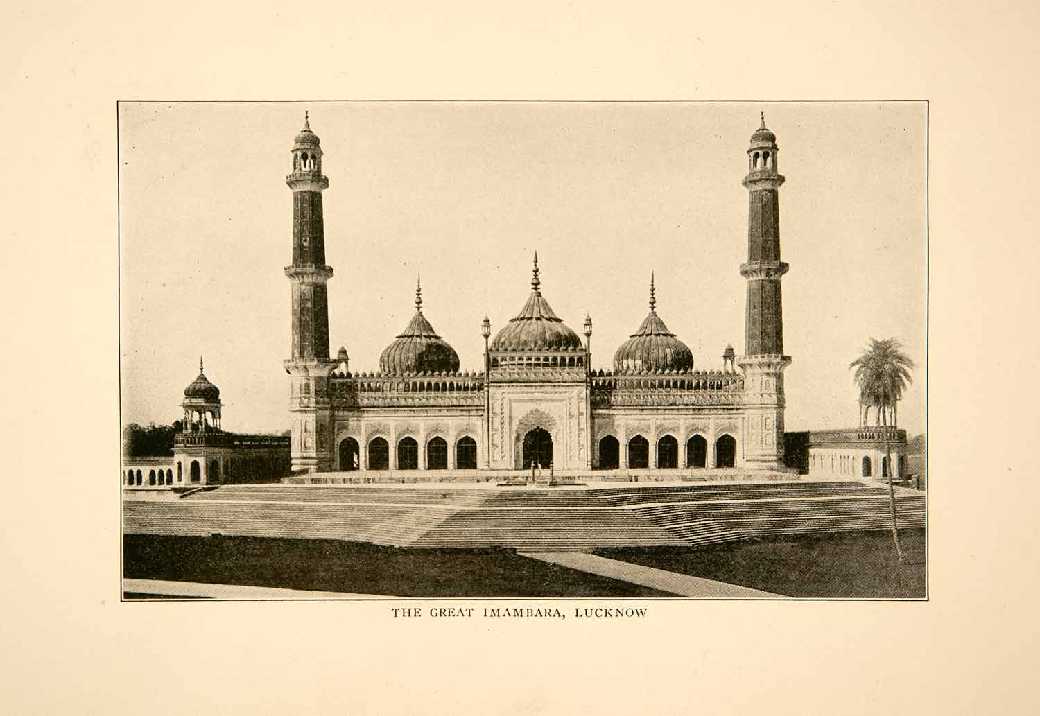 This is an original 1929 black and white halftone print of the great Bara Imambara and Asfi Mosque in Lucknow, India.