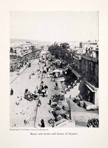 This is an original 1929 black and white halftone print of the bazar, streets and houses of Juypore (Jeypore) in India.
