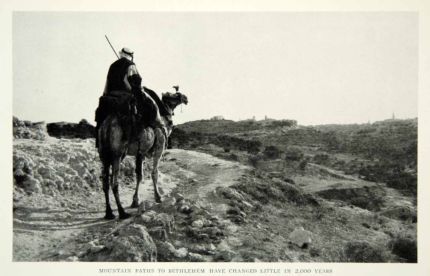 This is an original 1929 black and white halftone print of one oft he mountain paths leading to Bethlehem, currently in the West Bank.
