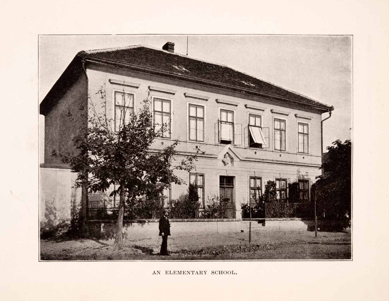 This is an original 1929 halftone print of an elementary school in the Czech Republic.