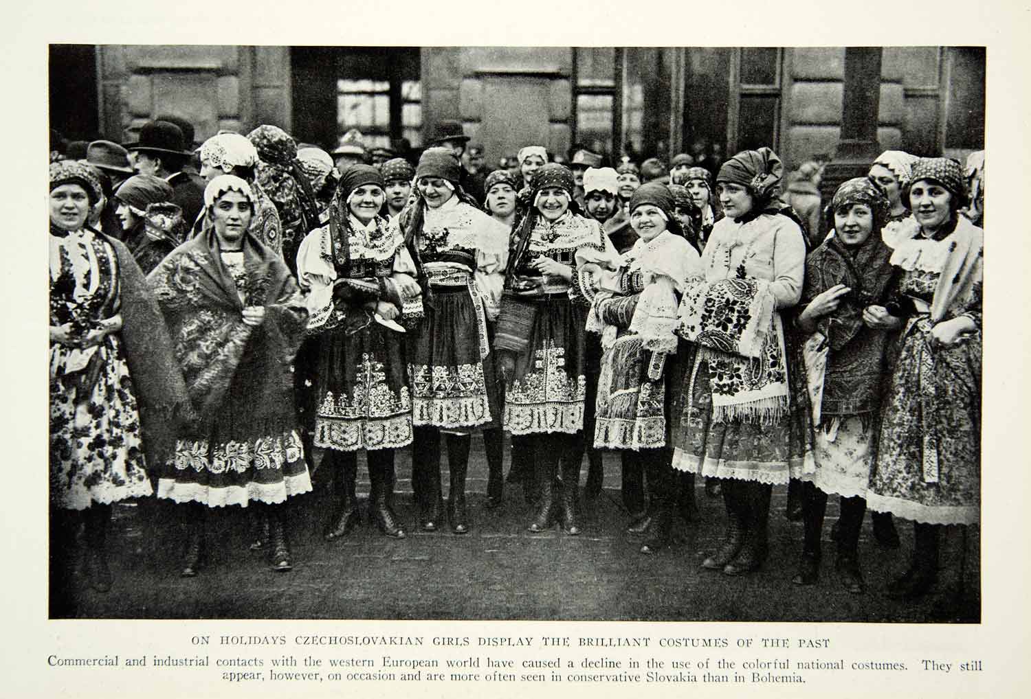 This is an original 1929 black and white halftone print of Czechoslovakian women wearing traditional eastern European costume.