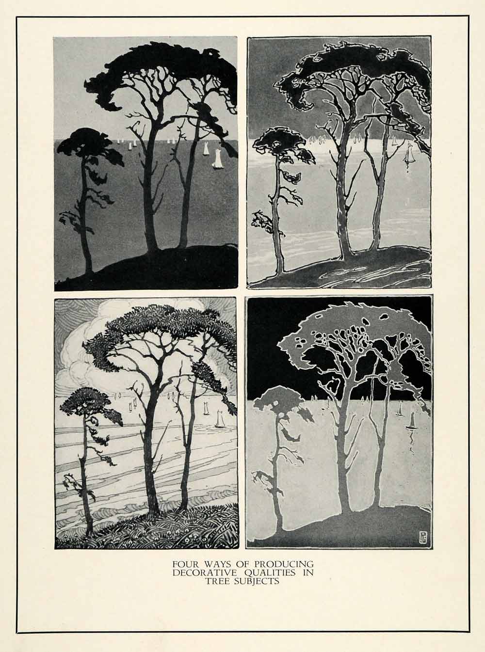 This is an original 1929 halftone print of four diffrent decorative qualities in tree subjects.