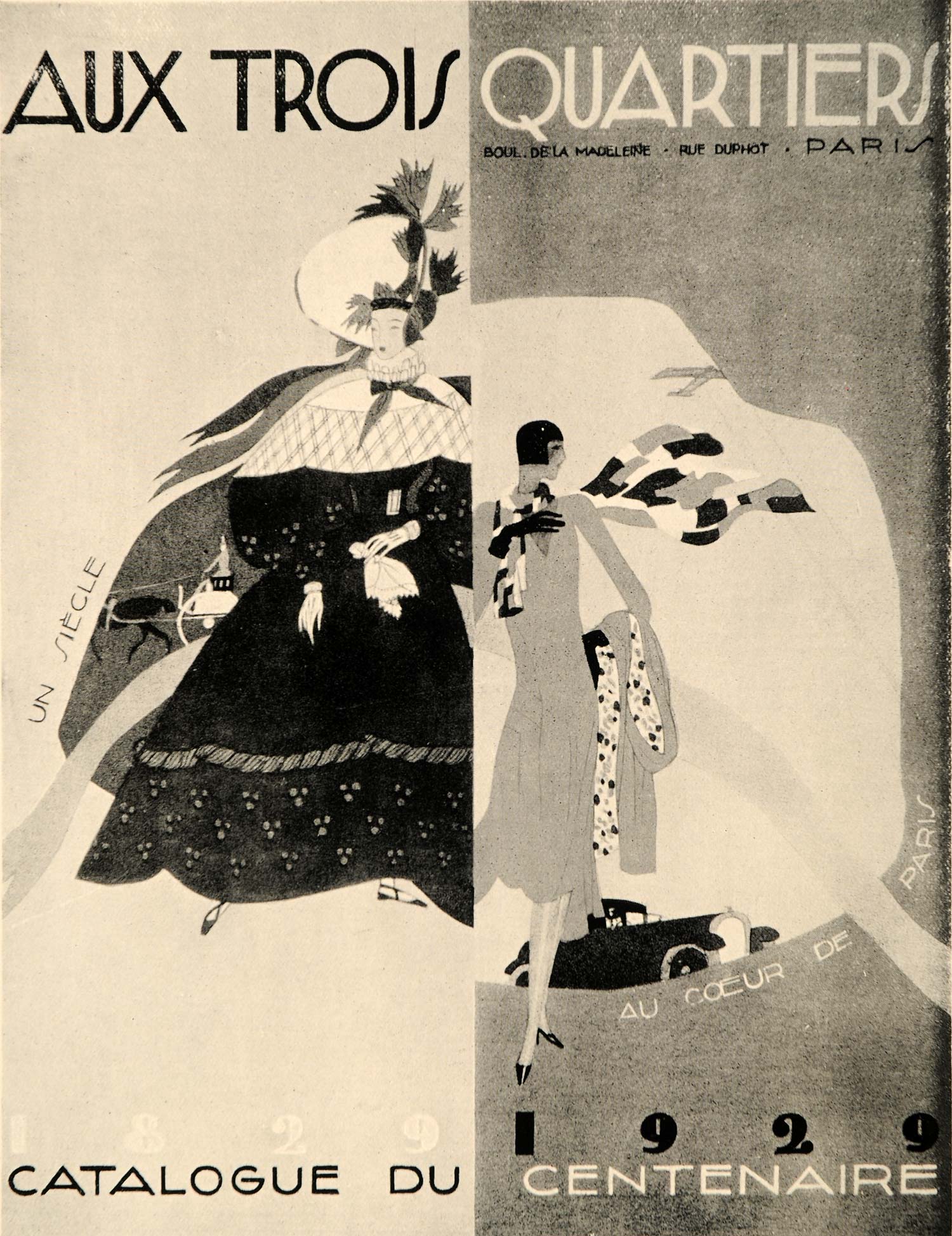 This is an original 1929 halftone print of a catalog cover design by Leon BŽnigni for the centenary of the Parisian department store, Aux Trois Quartiers.