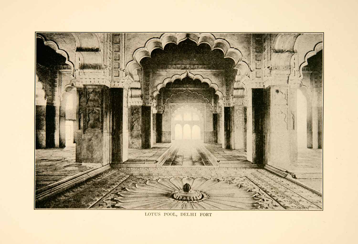 This is an original 1929 black and white halftone print of an interior view of the Lotus Temple in Kalkaji, India.