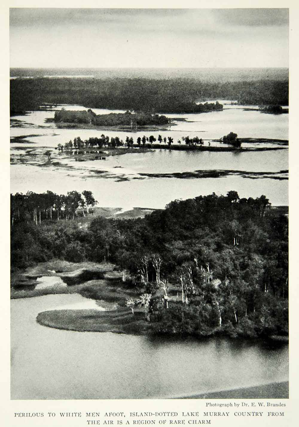 This is an original 1929 black and white halftone print of Lake Murray and the surrounding landscape, found in Papua New Guinea.