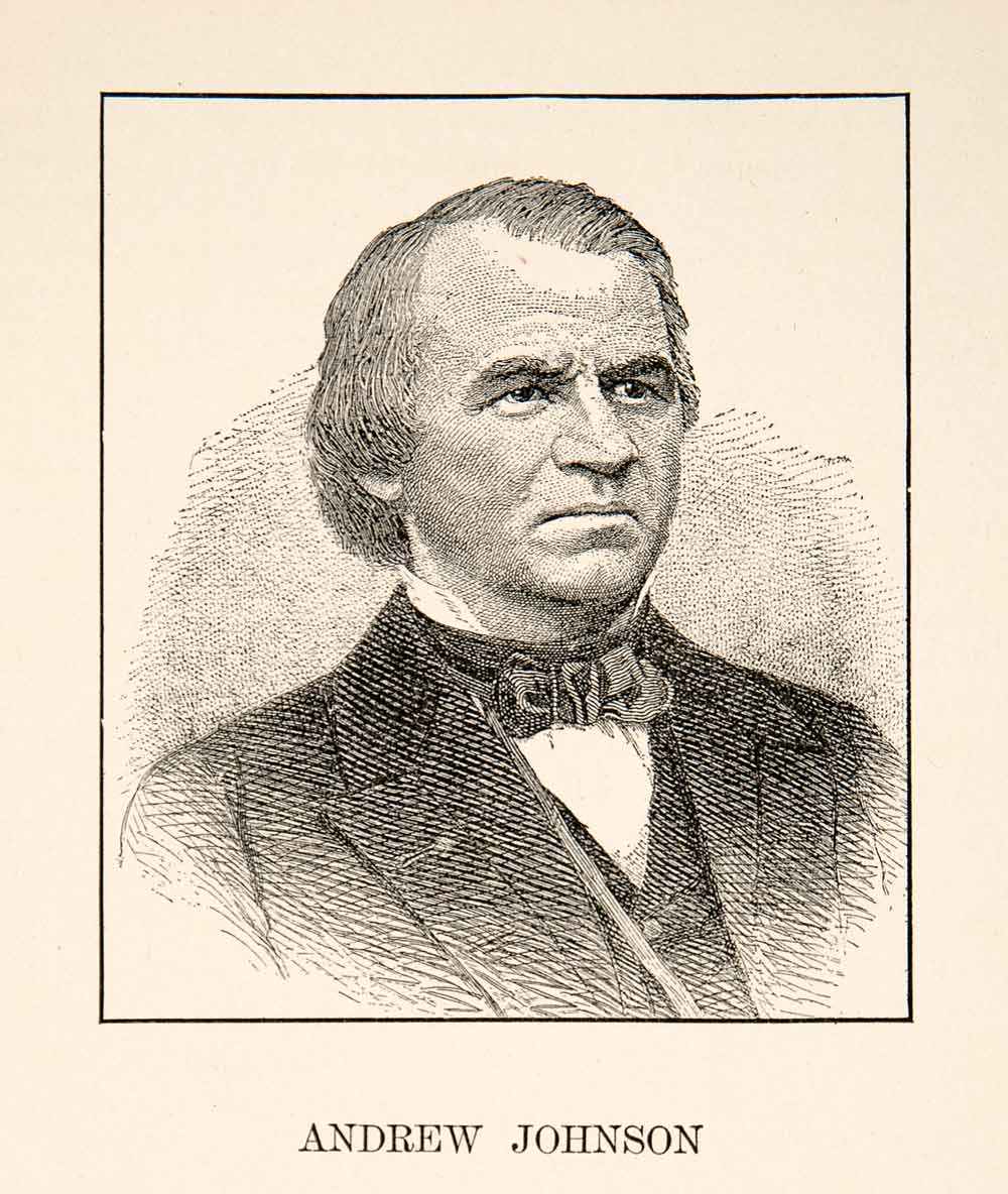 This is an original 1929 black and white relief line-block print of a portrait of Andrew Johnson, seventeenth President of the United States of America.