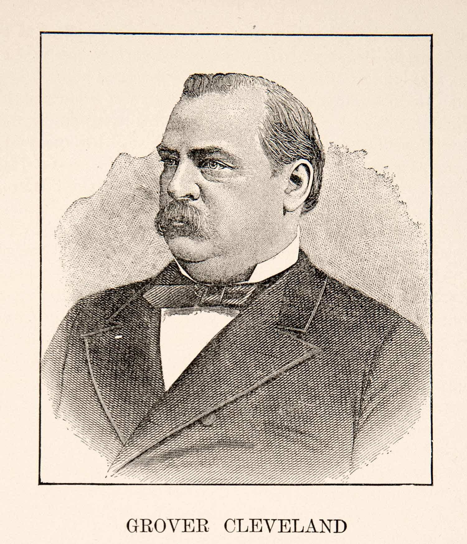This is an original 1929 black and white relief line-block print of a portrait of Grover Cleveland, the twenty-second and twenty-fourth President of the United States of America.