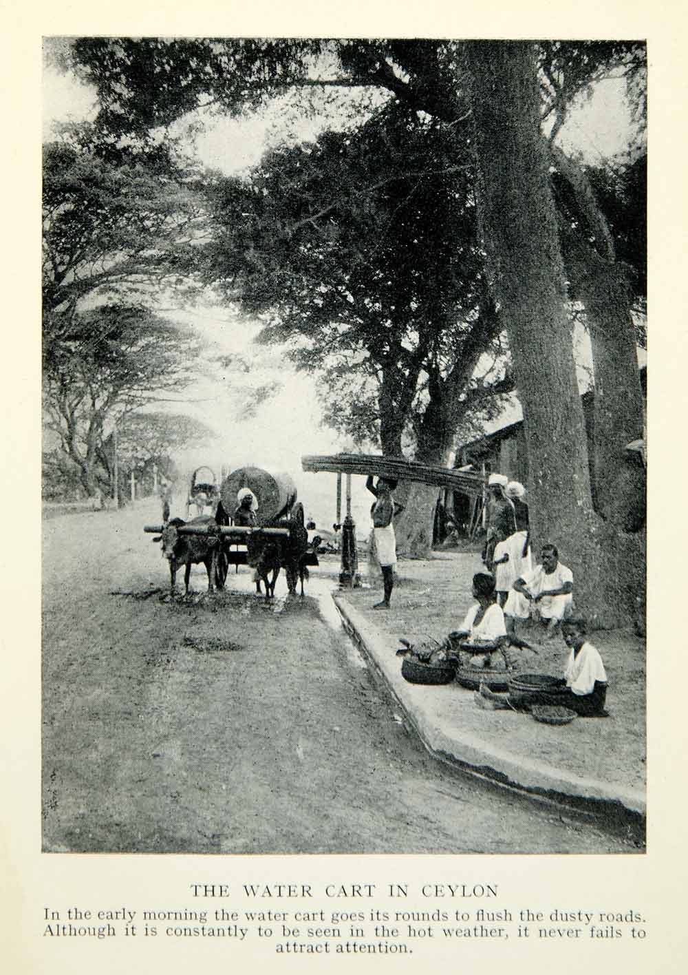 This is an original 1929 monochrome halftone print of Sri Lankan natives watching the arrival of the water cart, used to douse the dusty roads when the weather is particularly warm.