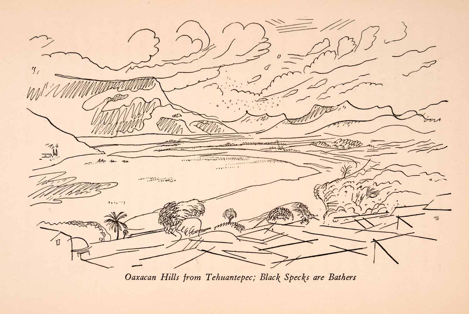 1929 Wood Engraving Oaxacan Hills Tehuantepec Mexico Bats Landscape Valley XGLA9