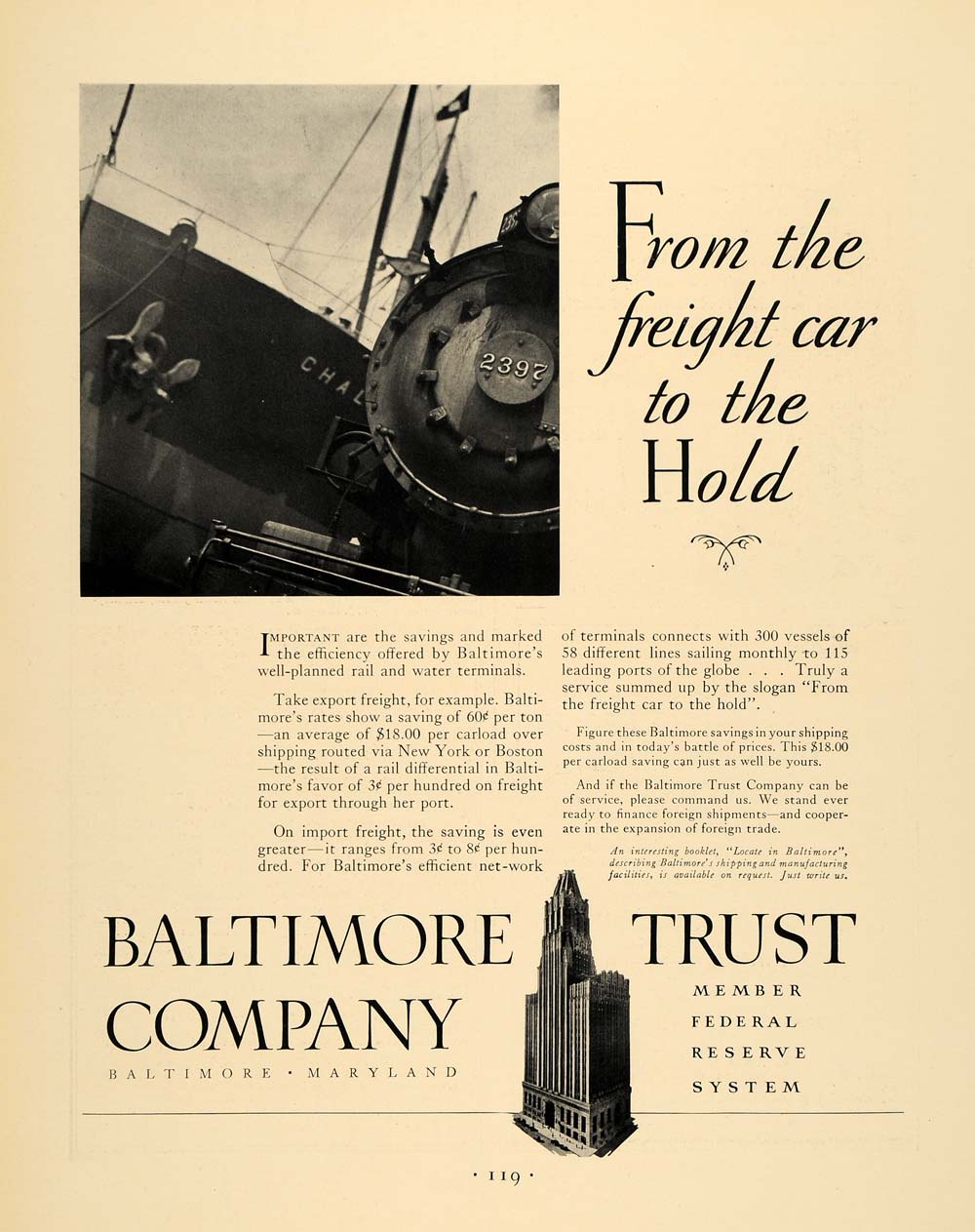 This is an original 1930 black and white print ad for the Baltimore Trust Company.