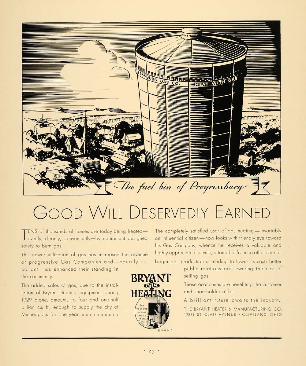 This is an original 1930 black and white print ad for the Bryant Heater and Manufacturing Company.