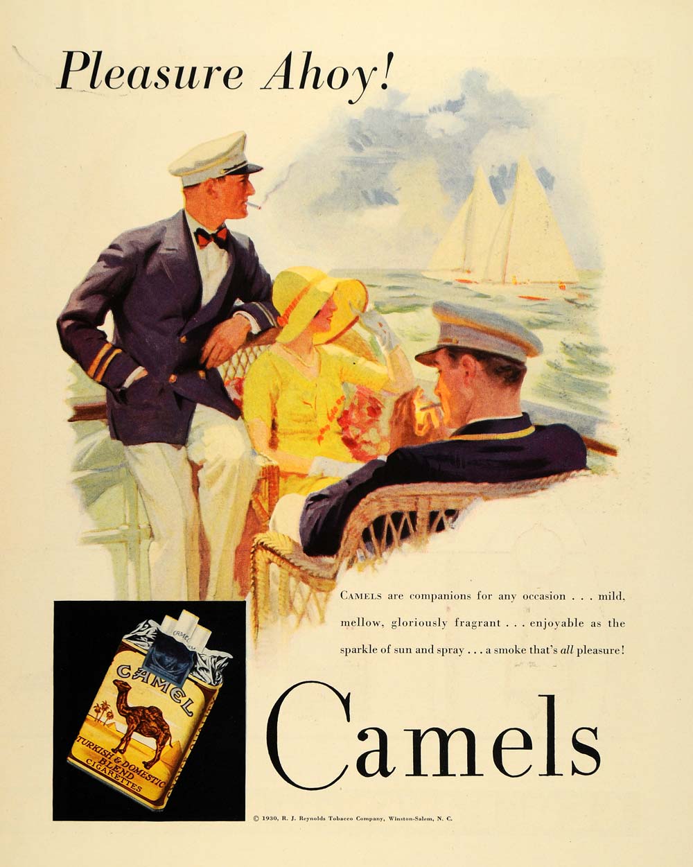 1930 Ad Camel Cigarettes Sailing Sail Boat Ship Captain - ORIGINAL F3A