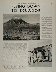 This is an original 1930 black and white print ad for Ford Airplanes (Pratt & Whitney engines) with a nice halftone image of a Ford plane passing El Misti in the Peruvian Andes.