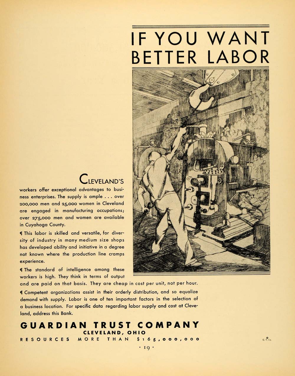This is an original 1930 black and white print ad for the Guardian Trust Company of Cleveland, Ohio.