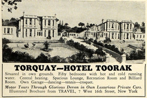 This is a small original 1930 black and white print ad for the Hotel Toorak in Torquay, Devon, England.