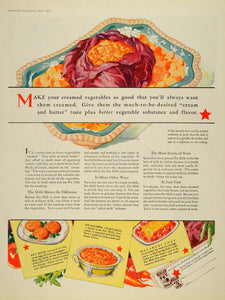 Keywords specific to this image: Vintage Advertising, creamed vegetables, cooking ingredient