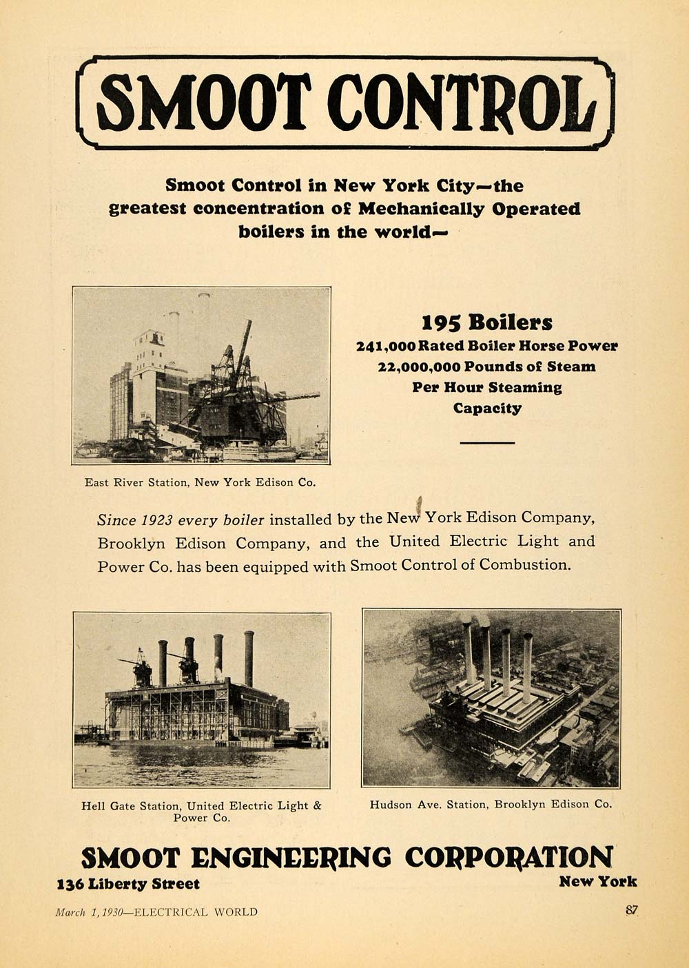 This ad features an image of the East River Station, New York Edison Company; Hell Gate Station, United Electric Light & Power Company; and the Hudson Avenue Station, Brooklyn Edison Company.