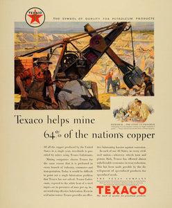This is an original 1930 color print ad for The Texas Company. The ad features an image of men mining for copper.