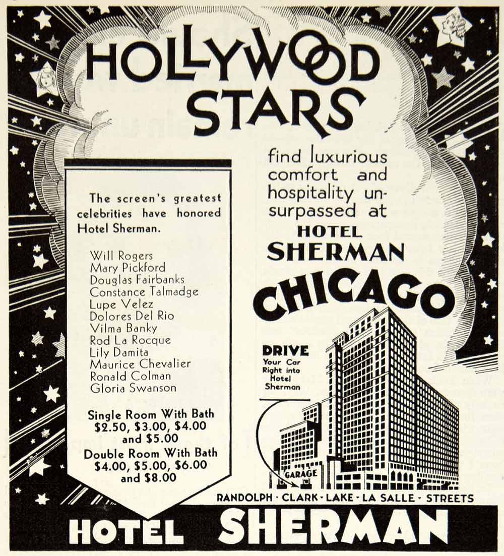 This is an original 1930 black and white print ad for the Hotel Sherman in Chicago.