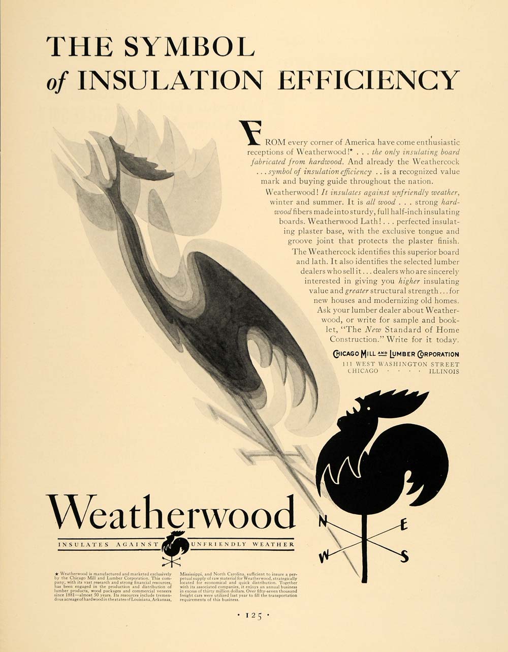 Keywords specific to this image: Rooster, Weathercock, Construction, Weather Vintage Advertising