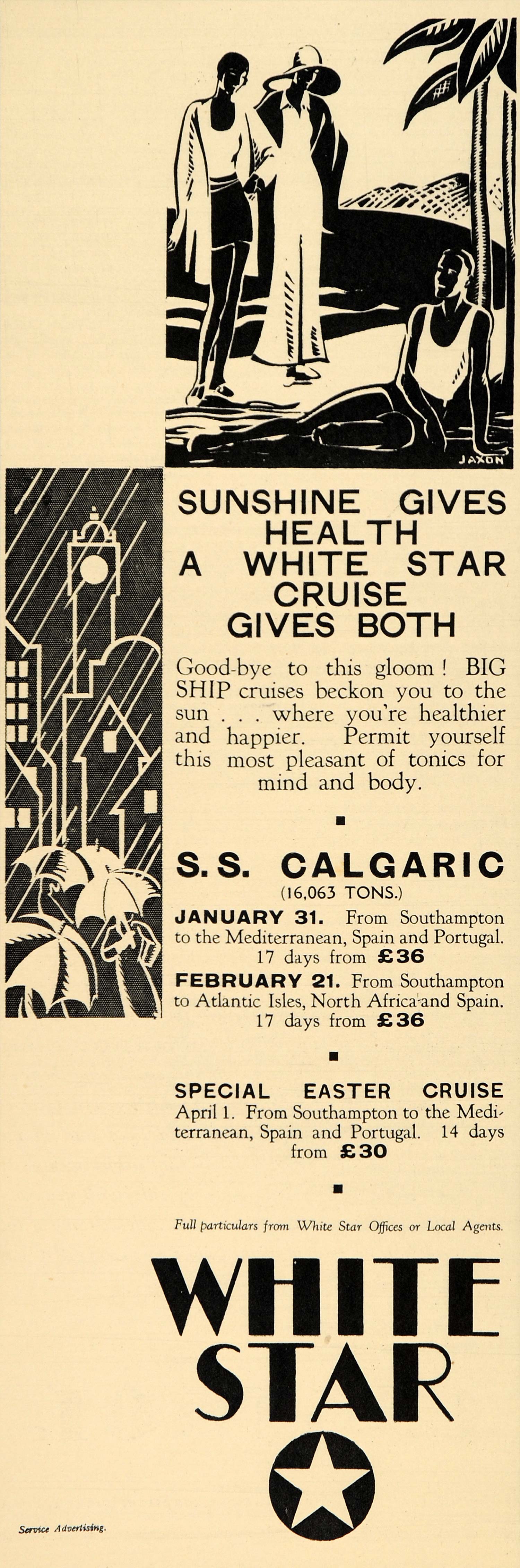 This is an original 1930 black and white print ad for White Star cruises aboard the S.S.