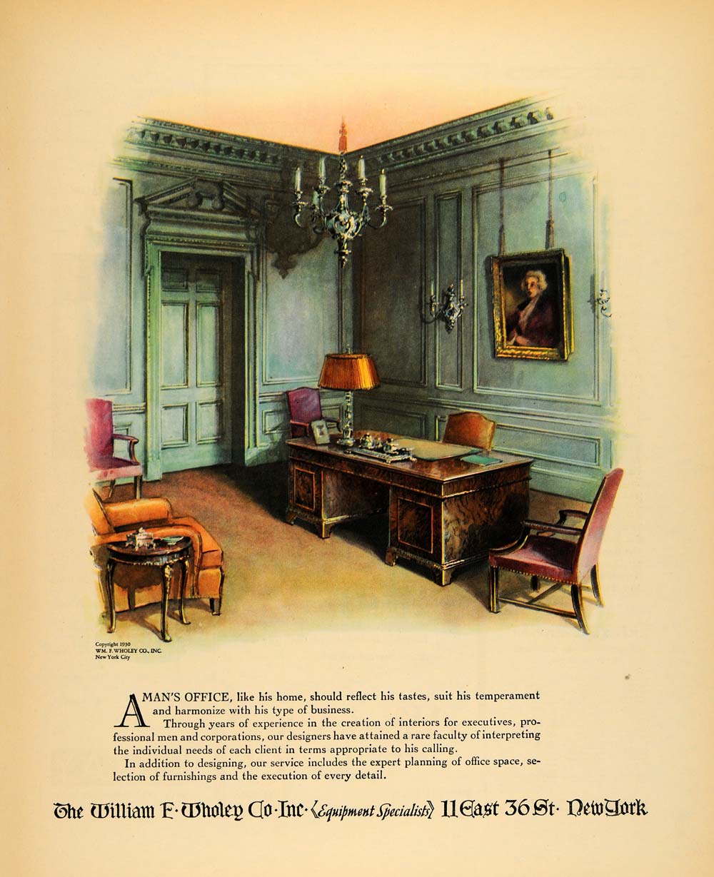 This is an original 1930 color print ad for the William E. Wholey Company-- equipment specialists of New York.