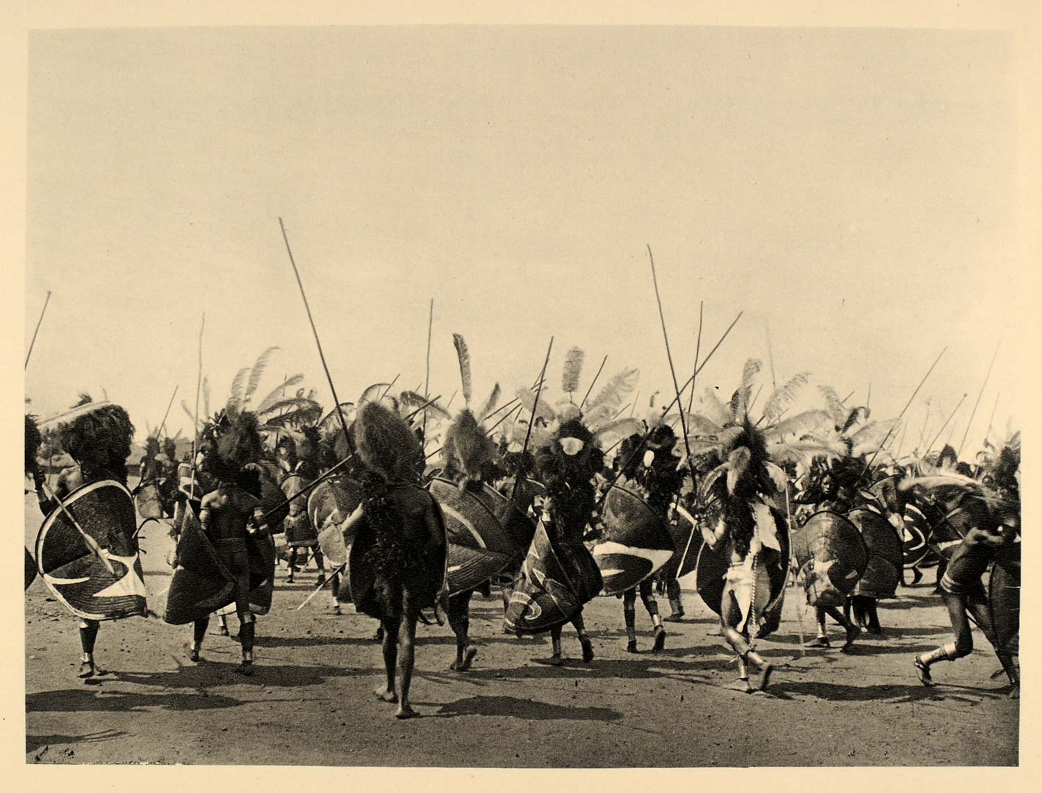 1930 African Kavirondo War Dance Warriors Dancing Spear - ORIGINAL AF2