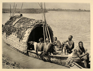 1930 African Men Boat Logone River Chad Photogravure - ORIGINAL PHOTOGRAVURE AF2