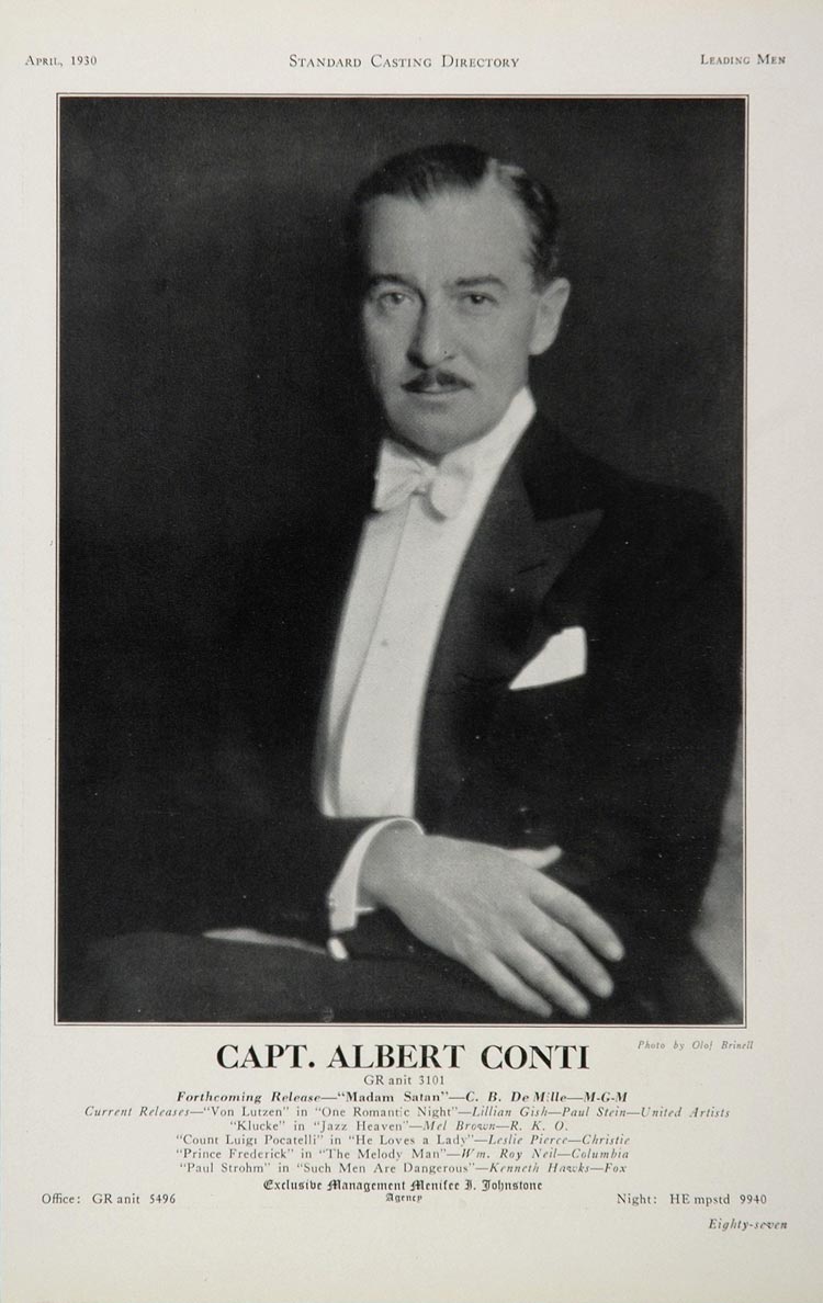 This is an original 1930 casting ad for Capt. Albert Conti.